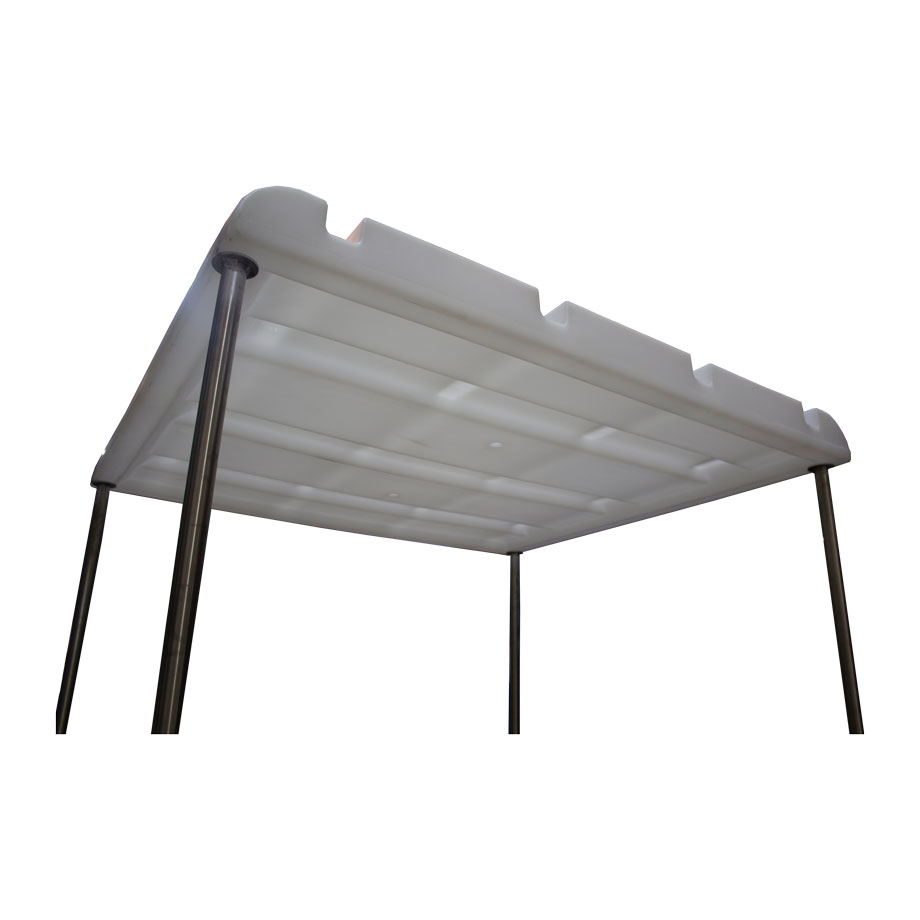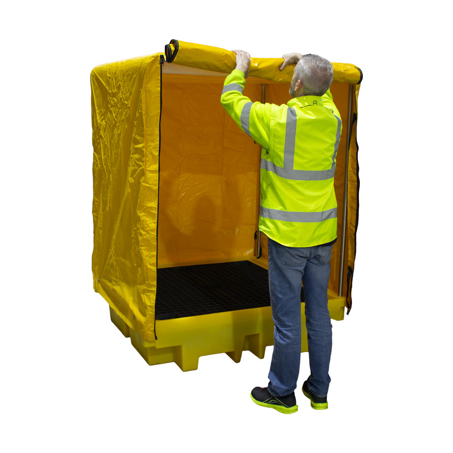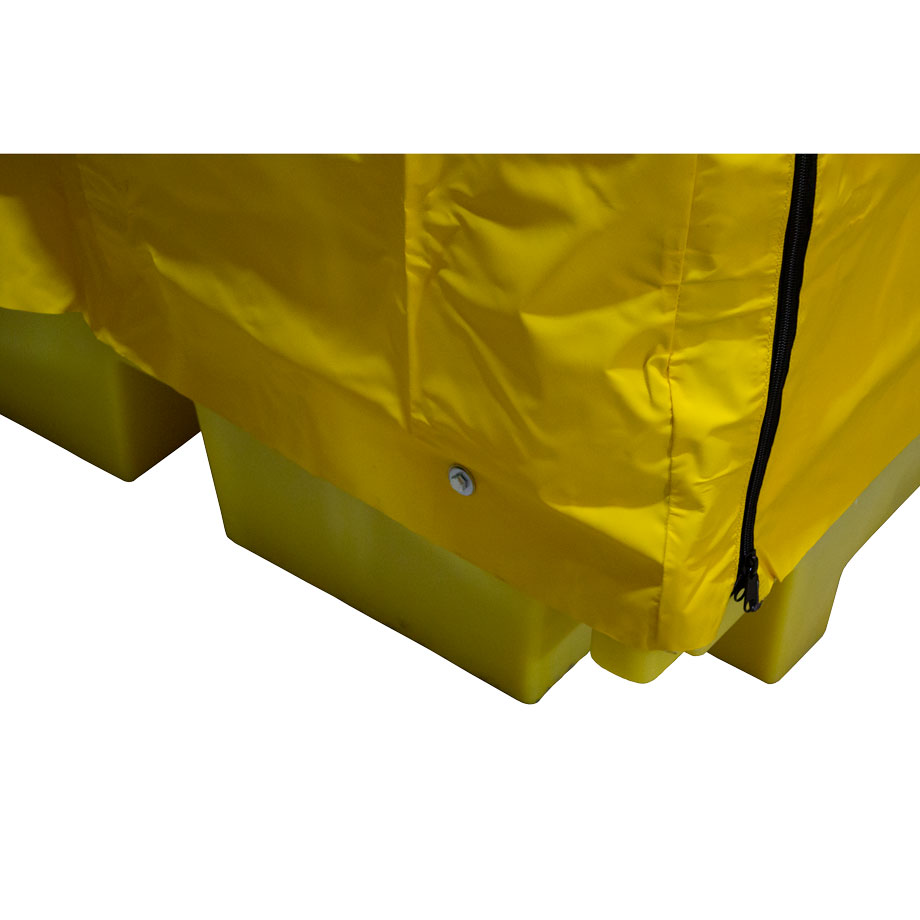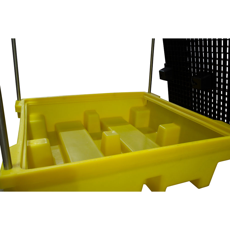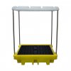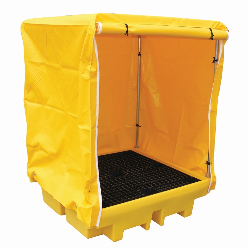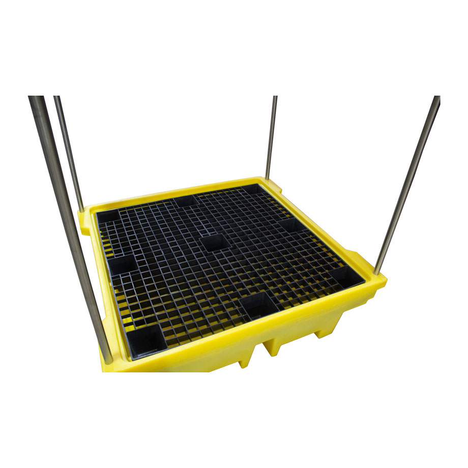 Поддон для бочек BP4C разработан для обеспечения возможности хранения до четырёх бочек или другой тары на открытом воздухе без заполнения поддона осадками. Поставляется в комплекте с самосборной стальной рамой и полиэтиленовым покрытием. Откидной полог имеет стяжки, чтобы удерживать его в открытом положении.