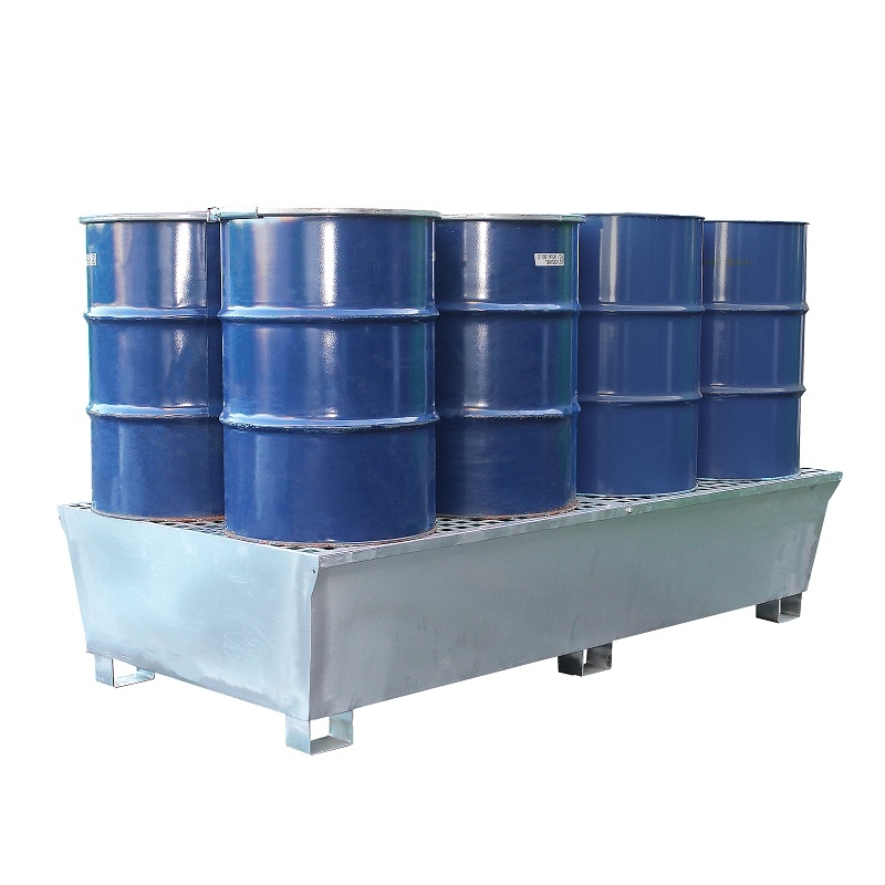 Стальной поддон для бочек GSP8D изготовлен из оцинкованной стали толщиной 2 мм и предназначен для хранения тары и локализации разливов в условиях не позволяющих использовать пластиковые поддоны, оснащён специальными стойками для того чтобы приподнять поддон над поверхностью и возможности перемещения вилочным погрузчиком и позволяет разместить 8 бочек или другую тару.