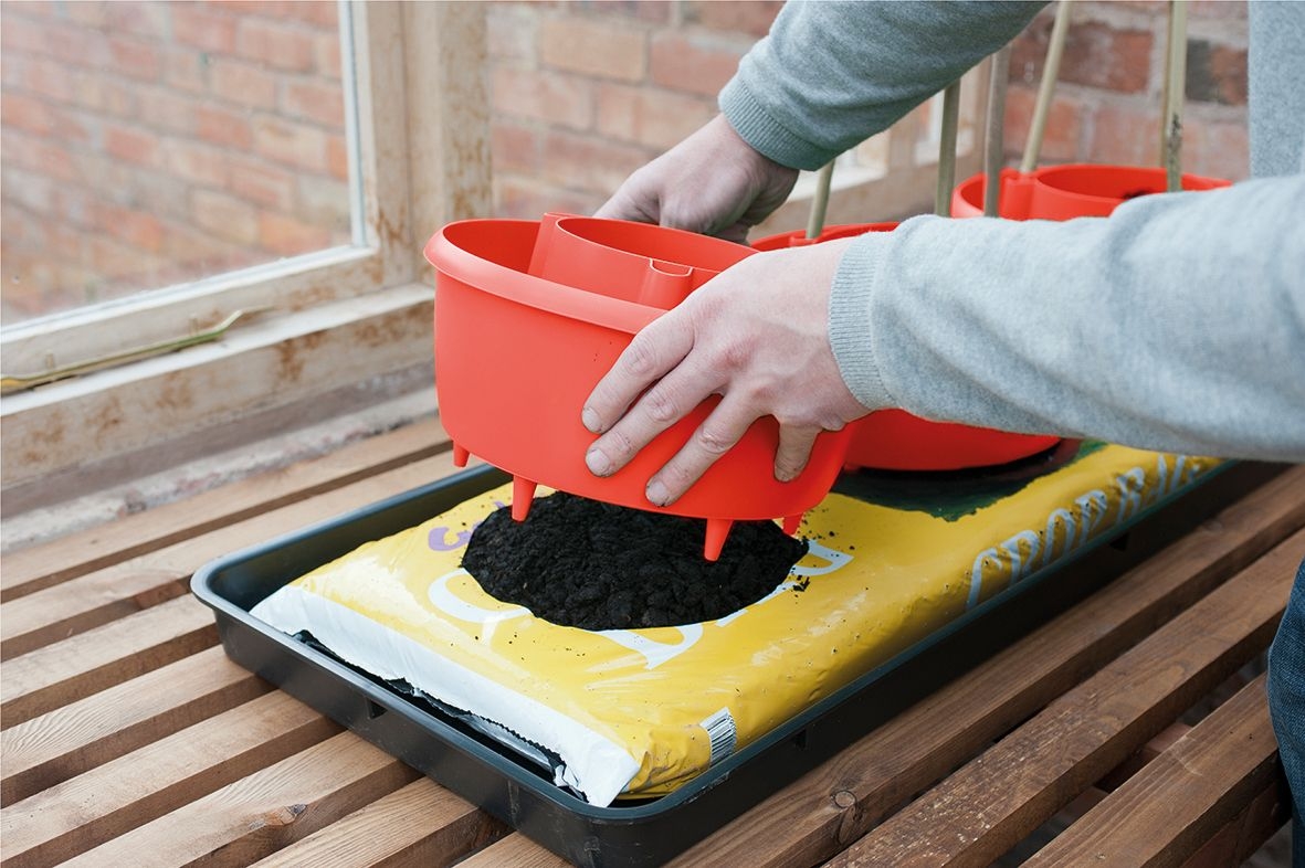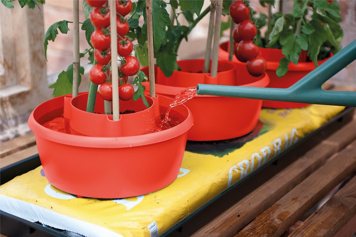Наши новые уникальные Plant Halos - это решение "все в одном" для полива и поддержки урожая таких популярных культур, как томаты, перец и фасоль. Продаваемые в наборах по 3 штуки, Plant Halos могут использоваться в мешках для выращивания, горшках (диаметром 26 см и более), приподнятых грядках, а также на традиционных овощных участках. Центральная часть создает посадочную зону, что особенно полезно при использовании мешков для выращивания, так как позволяет углубить посадочную зону для развития более здоровых растений. Внешний "ров" объемом 3,1 литра оснащен шестью поливочными шипами, которые проникают под поверхность на 2,8 см, доставляя воду непосредственно к корням растений. Благодаря этому вода и жидкая подкормка подаются с меньшей скоростью, которую растение лучше усваивает, предотвращая потери, характерные для обычного полива. Обычно на полный слив воды из резервуара уходит от 3 до 6 часов, в зависимости от погоды и состояния почвы. Plant Halos также оснащены уникальной системой поддержки. 3 анкерных паза окружают внутренний горшок и обеспечивают жесткую, устойчивую к ветру конструкцию с использованием бамбуковой или другой поддержки (не входит в комплект). В комплект входит крепёж для поддержки, который позволяет соединить до 4 опор на вершине получившейся конструкции. Крепёж для опор аккуратно отделяется пользователем от основного изделия. Plant Halos изготавливаются из переработанного пластика, стабилизированного ультрафиолетовым излучением. Мы предлагаем три варианта цвета - чёрный, классический зеленый или томатно-красный.